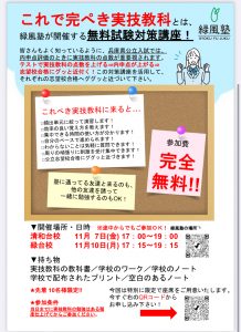 緑風塾では、大切なのに手を抜いてしまいがちな実技教科に強力にコミットする『これで完ぺき実技教科』を開催することとなりました。